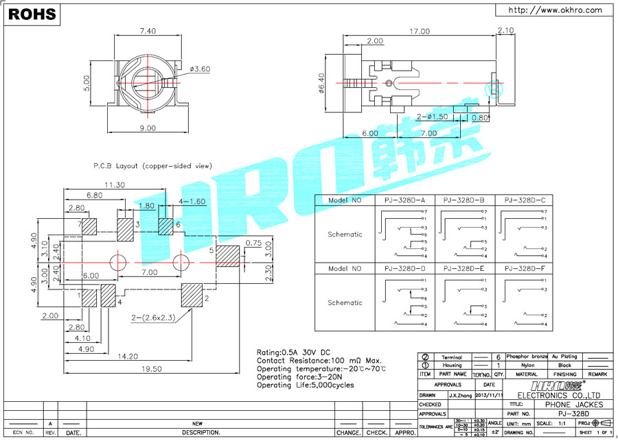 尺寸:17.00mm*7.40mm插拔力:3-20N类型:¢3.5-贴片式